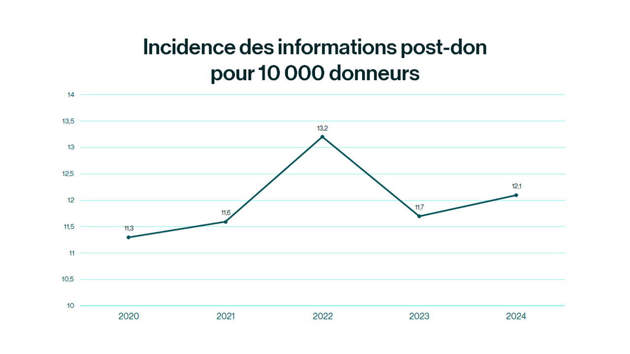 1 880 informations post-don ont été déclarées en 2024. La majorité est de nature infectieuse (90 %).Suivant l’agent infectieux, le donneur ne pourra plus donner son sang de manière temporaire ou définitive. Si nécessaire :