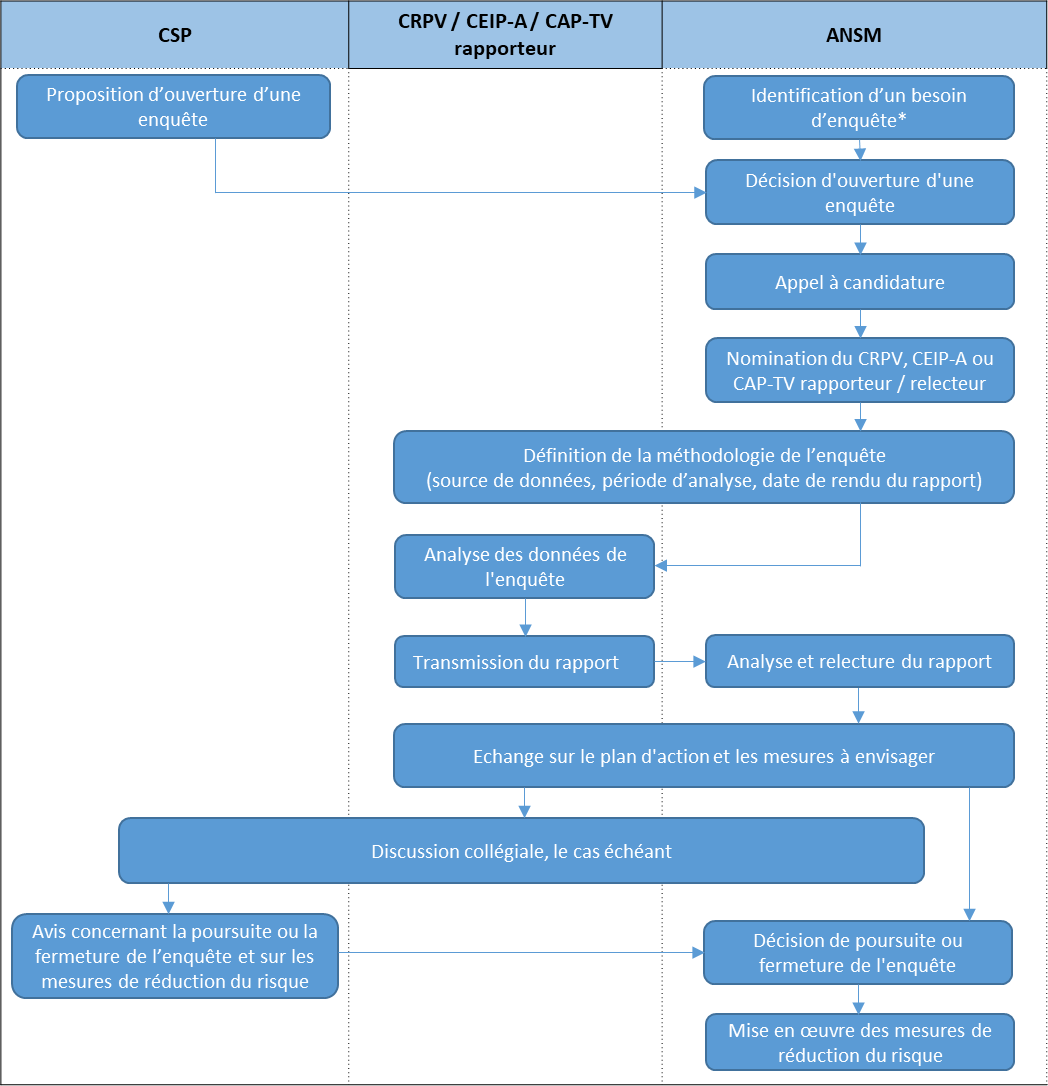 La réalisation d'une enquête nationale de pharmacovigilance ou d'addictovigilance